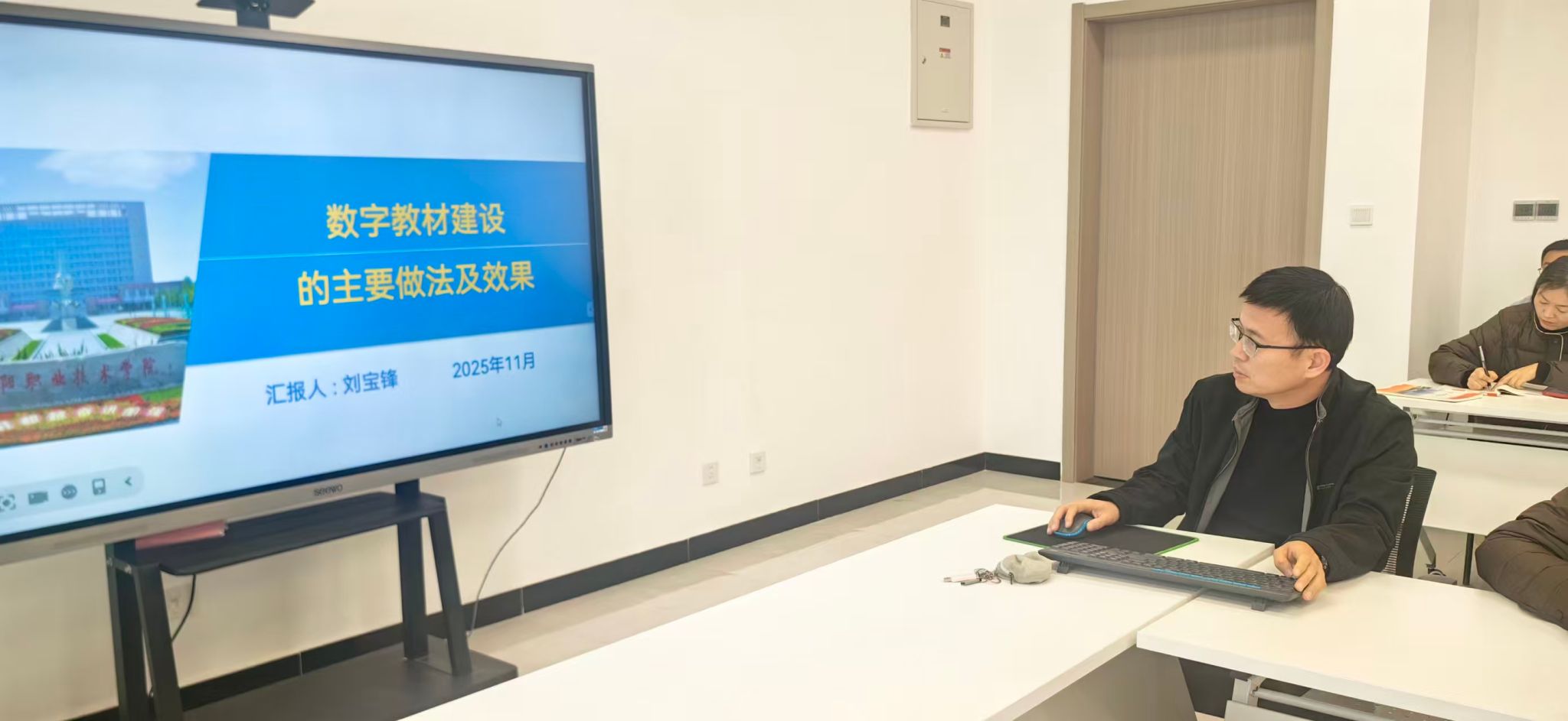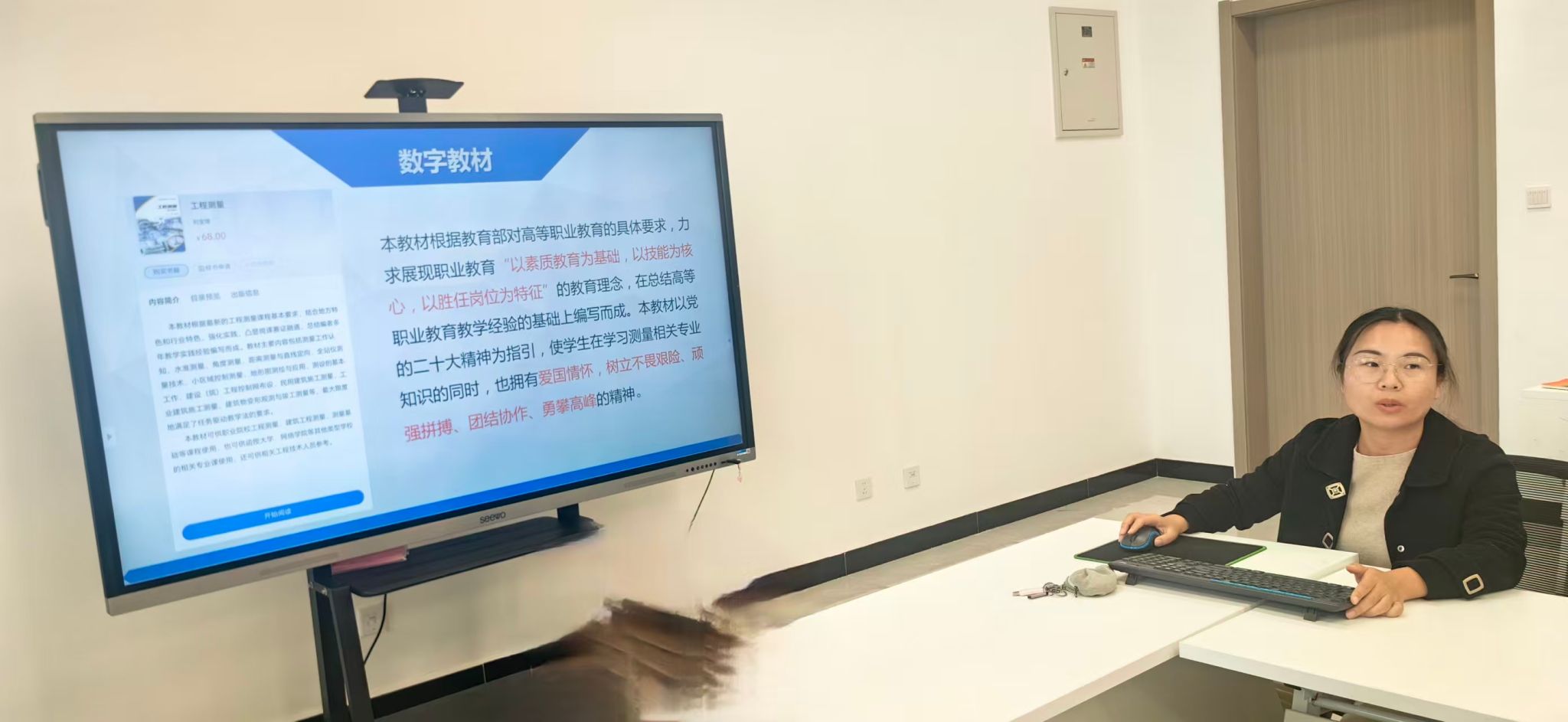 活动第二项内容,教材主编刘宝锋围绕数字教材《工程测量》阐述了思政建设的框架,参编邓培荣老师汇报了具体章节思政元素的挖掘成果。马克思主义学院教师针对数字教材的媒介特性,提出可设置“测量精神”拓展阅读专栏,嵌入测绘先驱人物视频访谈;在关键知识点链接“数据诚信”虚拟实训模块,通过典型误差案例引导学生理解精准测量的重要意义,将“工匠精神”和“诚信教育”以可视化、交互化的方式融入教材体系,实现价值引领与知识传授的深度融合多方面的建设意见。