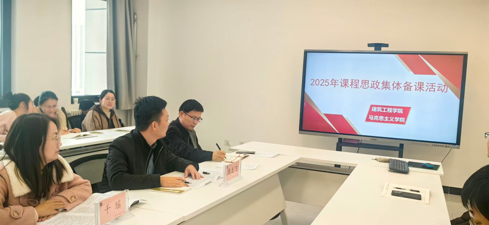 按照《咸阳职业技术学院课程思政集体备课活动方案》工作要求,为深化课程思政内涵建设,推动思政教育有效融入专业教学。11月26日下午,建筑工程学院在教学楼⑧902会议室举行2025年课程思政集体备课活动,围绕陕西省职业教育在线精品课程《BIM应用与项目管理》与数字教材《工程测量》的思政建设展开深入研讨。本次课程思政集体备课活动邀请到马克思主义学院千瑶、焦龙飞、李丹三位老师参加,并对课程建设、教材建设与课程思政的融入进行了点评、指导。