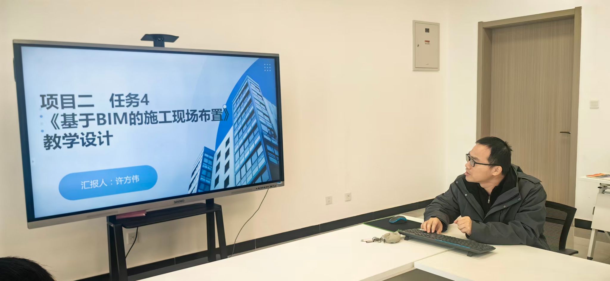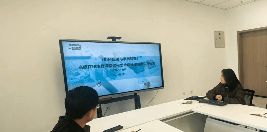 本次活动由道路与桥梁工程技术教研室主任朱凤君主持,教学副院长刘宝锋及全体专业课教师参与。活动第一项内容,课程负责人赵迪围绕《BIM应用与项目管理》课程建设基本思路、课程思政主线设计等方面进行了交流汇报,主讲教师许方伟对项目二中的任务4《基于BIM的施工现场布置》教学内容如何设计、教学内容与思政元素的融合等进行了展示。马克思主义学院教师结合课程特点,对课程建设情况进行了点评,并建议在教学中增设“工程伦理微课堂”,在任务中嵌入团队协作与责任分工情境,构建沉浸式思政教学场景,让职业素养和责任意识在线上学习过程中自然渗透。