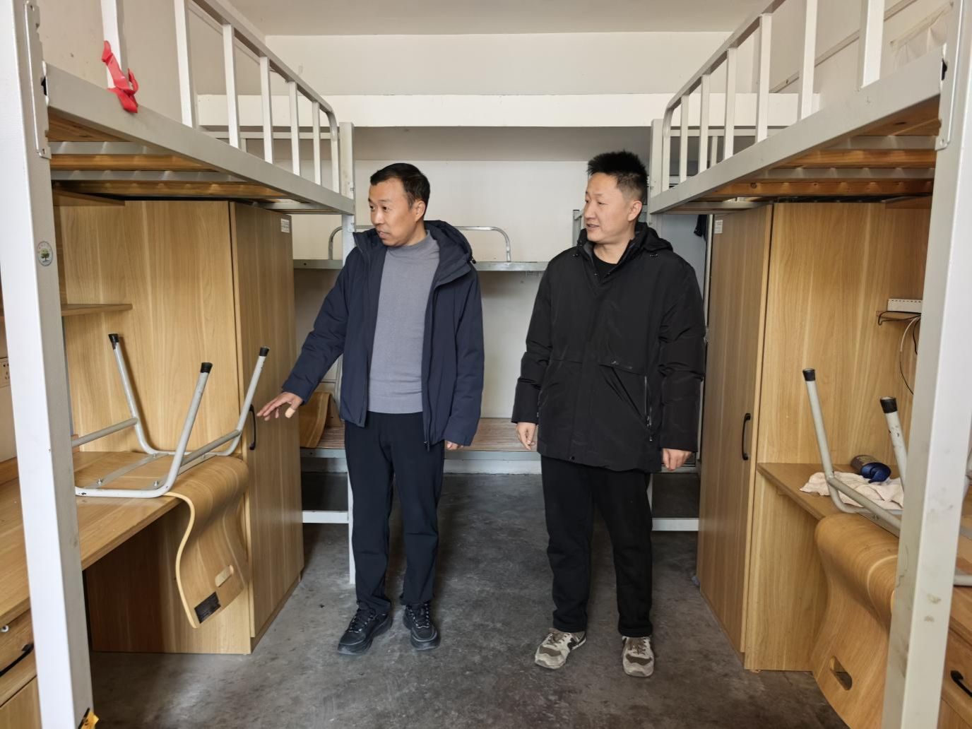 会后,宁海成一行深入学生实习就业的生活区进行实地查看。从宿舍环境、食堂餐饮到日常出行、业余活动设施,宁书记逐一细致询问,详细了解学生们的生活状况和实际需求。他嘱托企业人事部门的同志,要多关心实习生的生活细节,及时解决他们遇到的困难和问题,为学生们营造安全、舒适、安心的生活环境,让他们能够全身心投入到实习工作中。